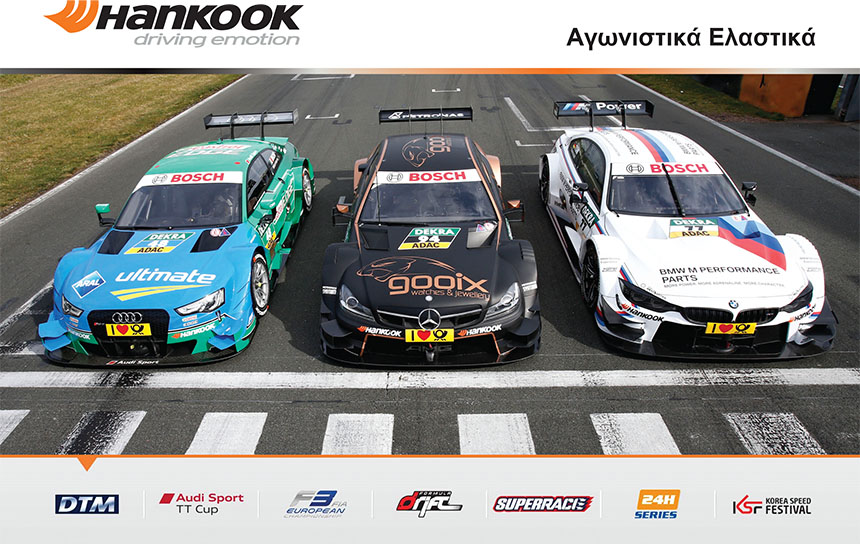 Η Hankook είναι επίσημος χορηγός του DTM, του δημοφιλέστερου και ίσως του μεγαλύτερου πρωταθλήματος αυτοκινήτων τουρισμού παγκοσμίως. Κορυφαίοι και καταξιωμένοι κατασκευαστές αυτοκινήτων όπως οι AUDI, BMW και MERCEDES-BENZ εμπιστεύονται τα ελαστικά Hankook στις ιδιαίτερα απαιτητικές συνθήκες του DTM. Επίσης η Hankook είναι περήφανος χορηγός και άλλων πολύ σημαντικών πρωταθλημάτων του παγκοσμίου μηχανοκίνητου αθλητισμού. Μερικά από αυτά είναι το ενιαίο πρωτάθλημα AUDI SPORT TT, το ευρωπαϊκό πρωτάθλημα FORMULA 3 της FIA, το JuniorWRC, το FORMULADRIFT (USA), οι 24ωροι αγώνες αντοχής 24H SERIES με κατασκευαστές όπως η ASTON MARTIN, AUDI, LOTUS, MERCEDES-BENZ, PORSCHE και άλλοι.